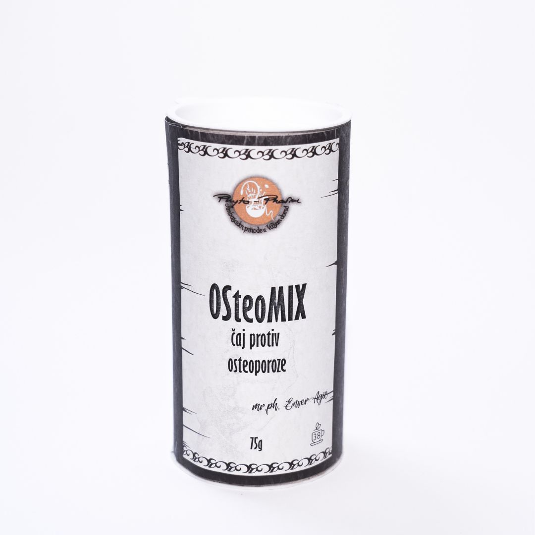Čaj za jake kosti i zglobove OsteoMIX je mješavina ljekovitog bilja bogatog mineralima koje stimuliše tvorbu koštanih ćelija i pomaže kod gubitka koštane mase pospješujući regeneraciju kostiju i poboljšavajući mineralnu gustoću i čvrstoću kostiju.